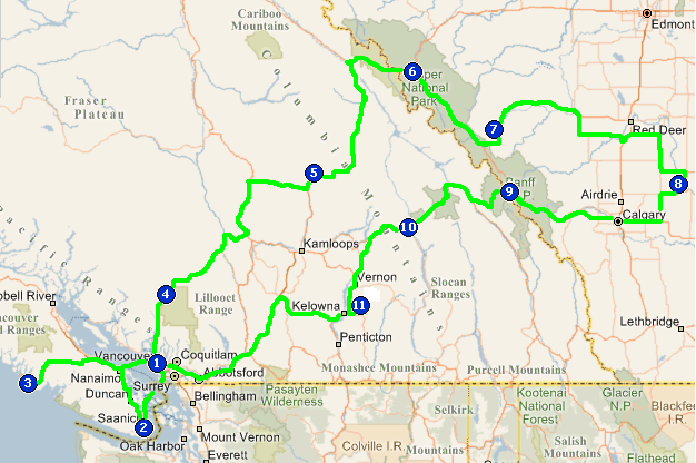 Ons reisschema voor onze rondreis door Canada ziet er als volgt uit: